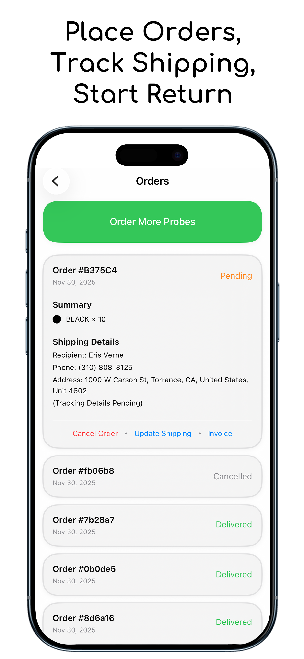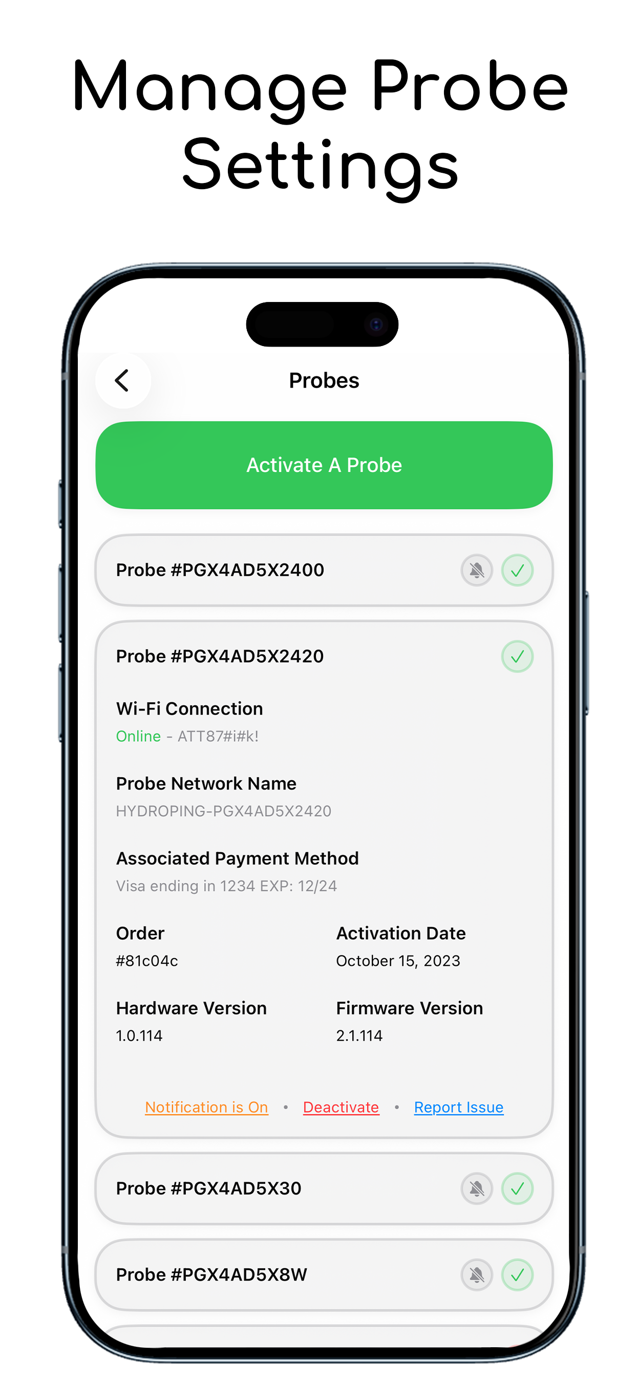 Receive Live Alerts, Get AI Suggestions, Manage Moisture Level, Activate Probes, Order Probes, and much more.